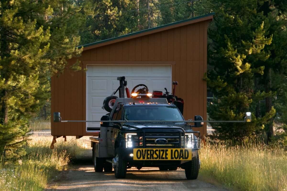 Our delivery trailer is specifically designed for transporting sheds and placing them right where you need them. A hydraulic system does the heavy lifting for us, and precision controls allow for adjustments down to the final inch. Bringing your shed home has never been easier!